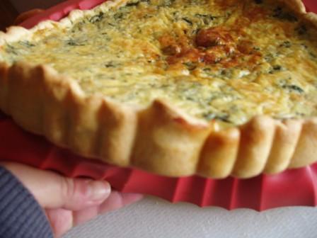 de repente abro o congelador e vejo um pacote de folhas de espinafres congelados. Boa ideia, que tal fazer uma quiche de espinafres com bacon? Mas como o bacon não era muito, juntei mais uma embalagem pequena de cogumelos laminados. Et voilá ... Uma quiche excelente, nutritiva e muito pouco calórica.