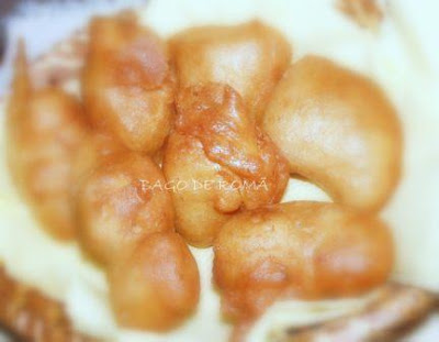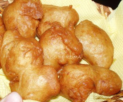 Numa frigideira larga, quando o óleo estiver bem quente, deitar colheradas da massa, e voltar quando a base ficar dourada.