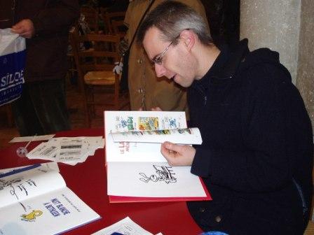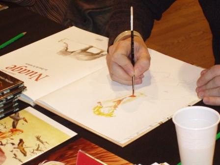 | Autor em plena sessão de autógrafos - desenho ao vivo |